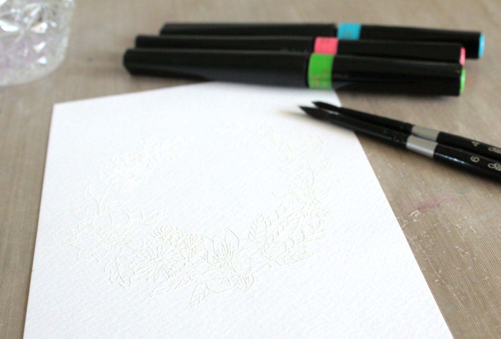 For this card I started by heat embossing the Crafter's Companion Colorista Aqua Stamp Set: Love with White Embossing Powder onto Watercolor Cardstock.