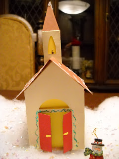 I used my Winter Woodland cartridge to make the entire "little village" with my mother-in-law's expression machine ( thank you! Now I know why I need the big one too! hehehe). It was easy to make all of the cuts, but gluing together was a little more challenging. For the window and door decorations I used various stickles and Sharpie Markers. For the roof tops I wanted it to be more "authentic" and I used my new "snow fluff" that I found at Archiver's, so when you touch it it feels nice and soft like snow! ( plus it had glitter in it! ) As far as adhesive goes I used the scotch quick dry glue, which I also have fallen in love with. I have to say the church is my favorite, and I hope you enjoyed stopping by, I'll be sharing much more with you as this Holiday Season continue!